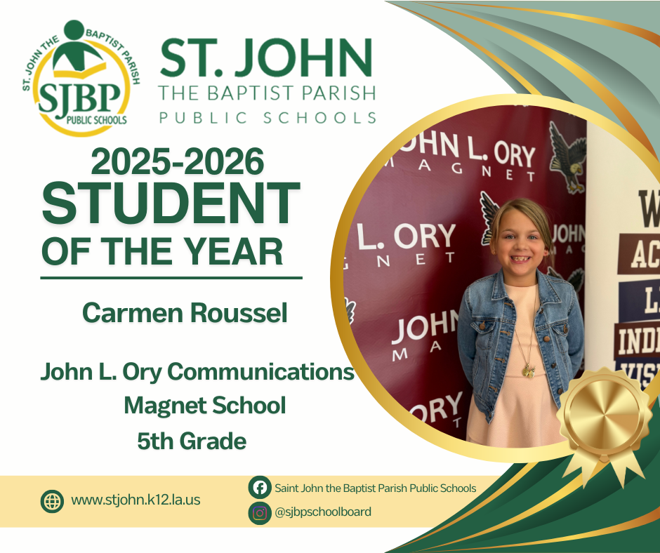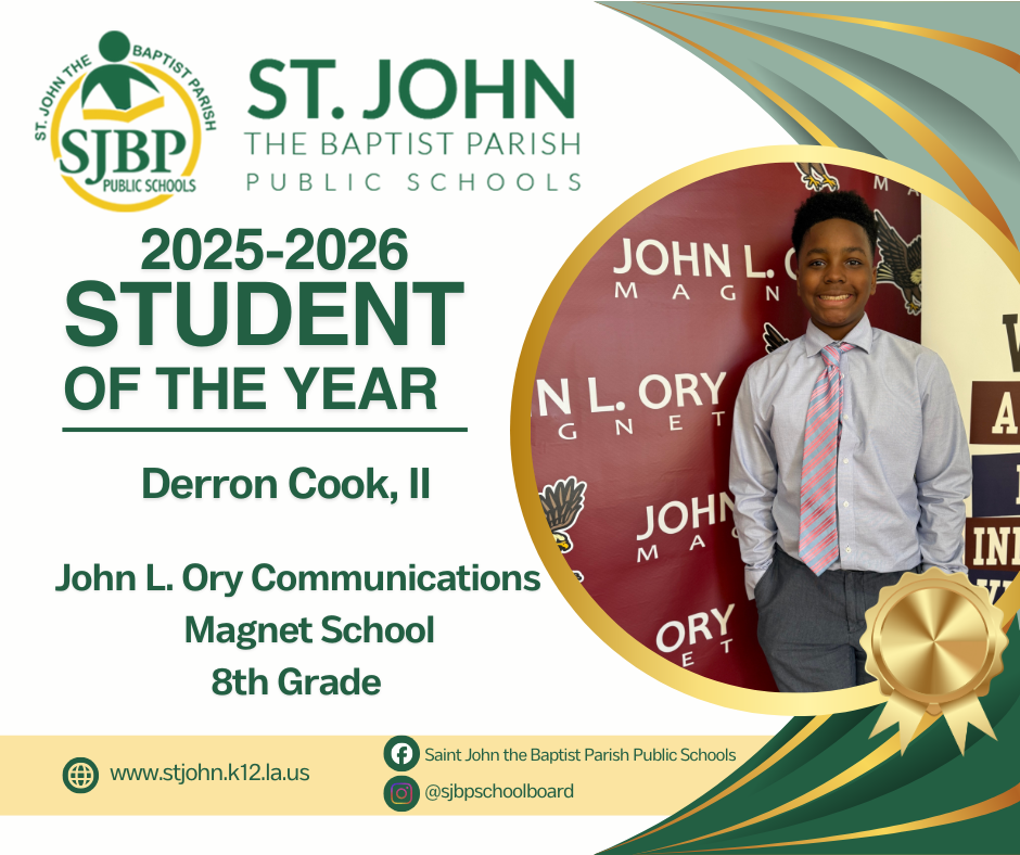 St. John the Baptist Parish Public Schools is thrilled to announce that all three of our district’s Students of the Year have advanced to the regional round of competition — an exceptional achievement and a moment of pride for our entire community.